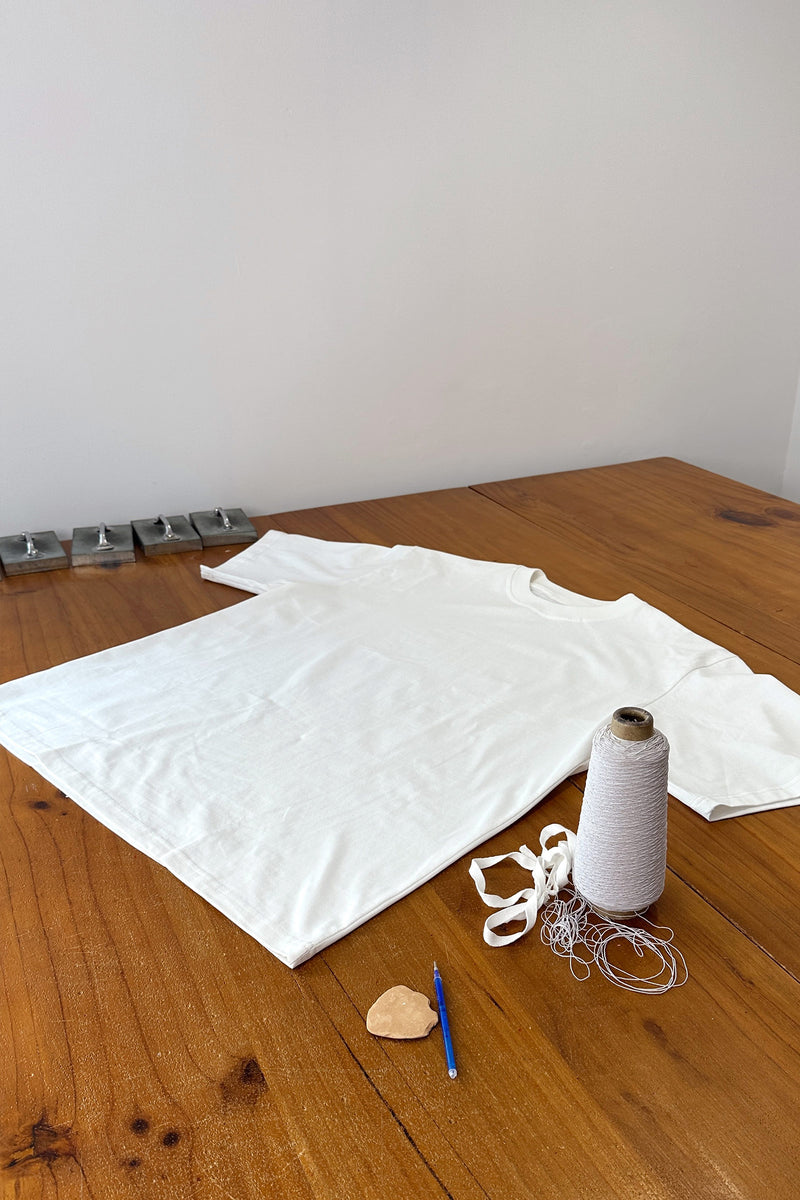 - Tailors chalk or heat erasable pen for drawing all the shirring lines directly onto the t-shirt.